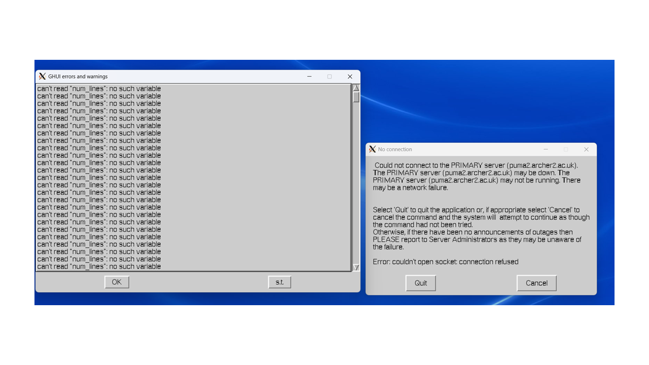 See here for a screen shot of the error message on puma2 after ‘umui &‘: